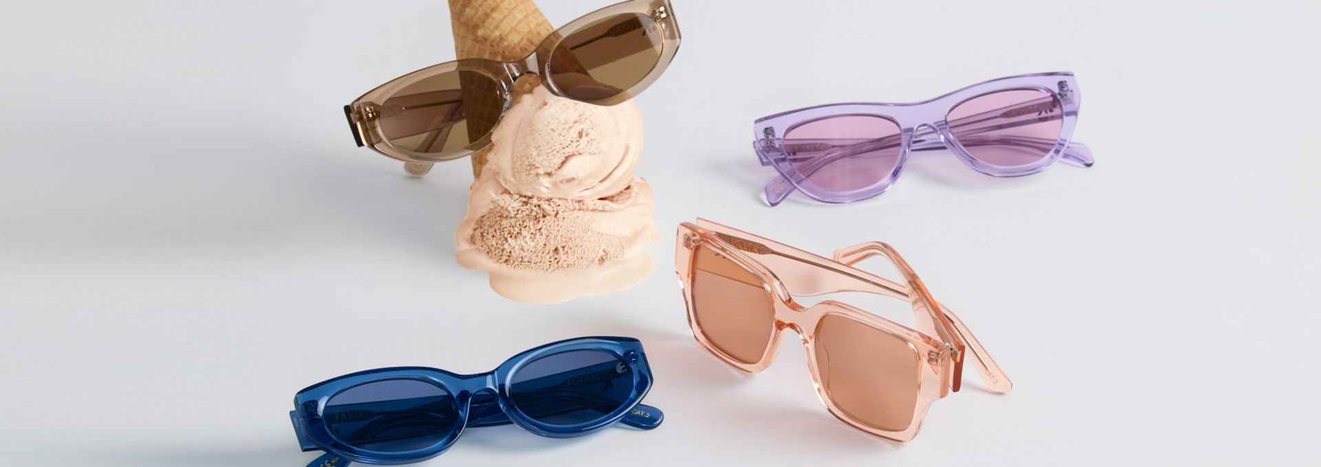 Throw shade with our collection of colour-blocked sunnies in juicy tints from soft peach to deep plum.