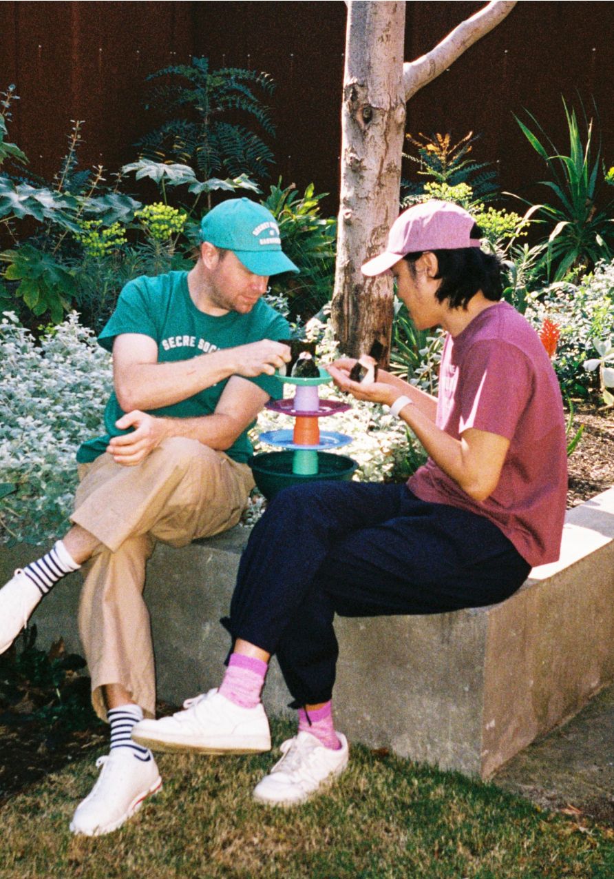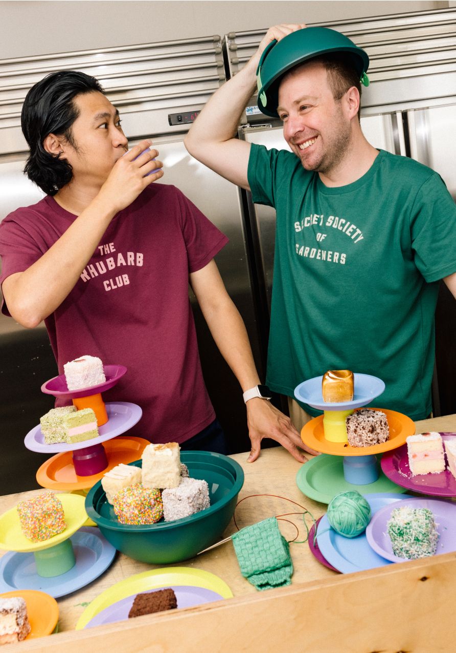 We went to visit Tokyo Lamington founders Min & Eddie (photographed below) in their Carlton-based café to find out more – and took our new kikki.K PIKNIK Ball along for the ride so our colourful sphere could meet their delicious cubes. A match made in heaven.